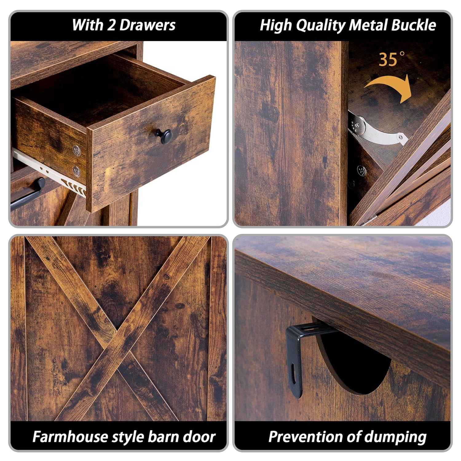 13 Gallons Tilt Out Trash Can Cabinet, Wooden Trash Cabinet with 2 Drawers, Free Standing Kichen Waste Bin Recycling Cabinet Pet Proof Hidden Trash Cabinet for Kitchen (Brown)