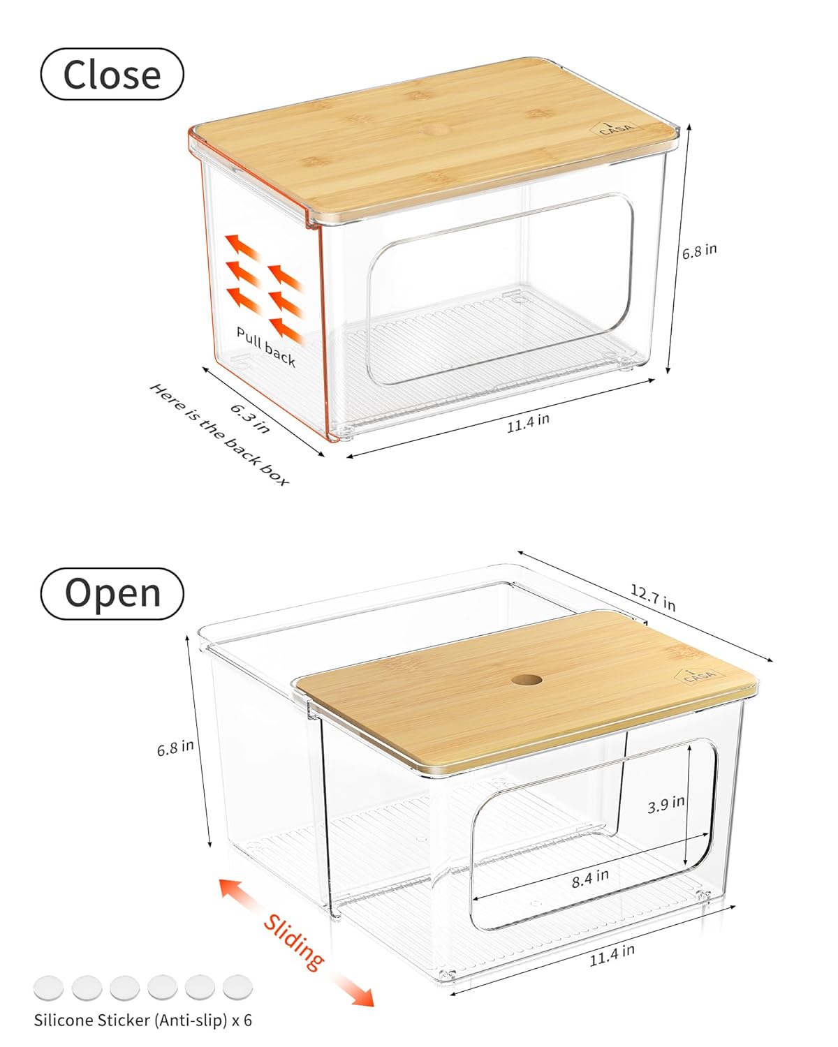 2 in 1 Trash Bag Dispenser Holder - Clear Acrylic Plastic Garbage Bags Container Tissue Box with Bamboo Lid Large Under Sink Organizer Kitchen Pantry Shelf Laundry Room Organization and Storage