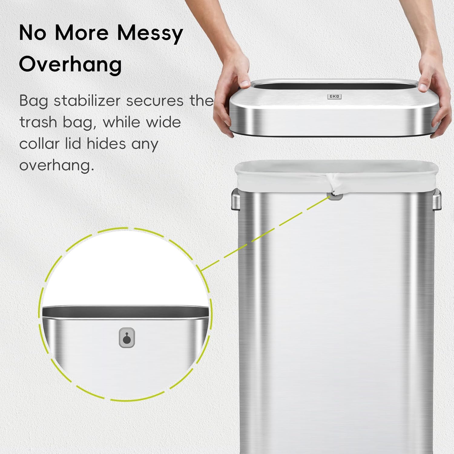 Large capacity and slim, space-saving profile that holds plenty of waste while minimizing footprint.