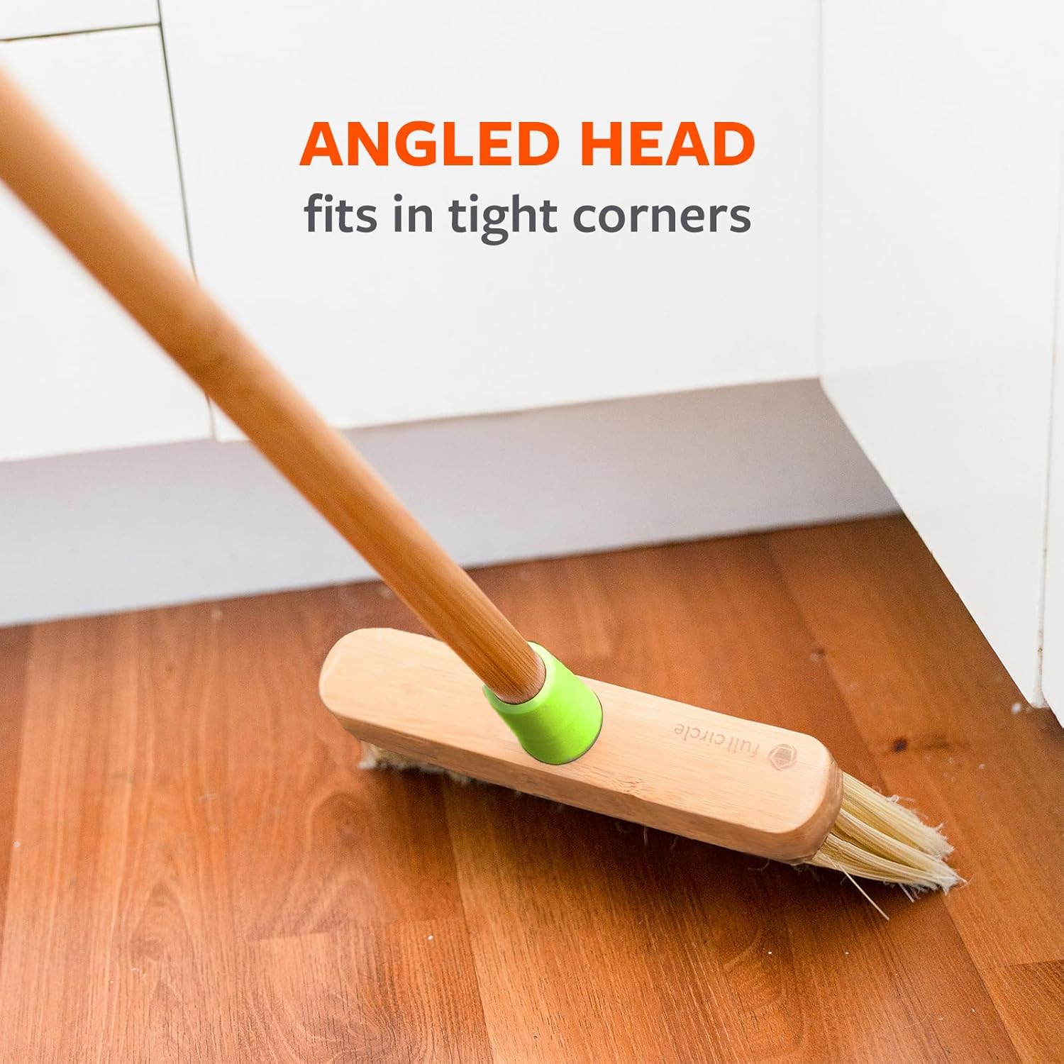 Full Circle Clean Sweep Bamboo Broom - Angled for Precision in Tight Spaces, with Recycled Stiff Bristles for Indoor & Outdoor Cleaning - Ideal for Pet Hair, Kitchen, Hardwood, and Garage, Green