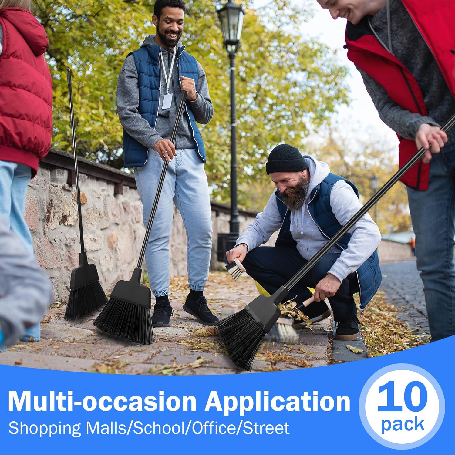 Roshtia 10 Pcs Heavy Duty Broom Bulk 54 Inch Outdoor Indoor Commercial Brooms with Adjustable Long Handle Floor Cleaning Supplies for Courtyard Garage Lobby Patio Shop Home Office(Black)